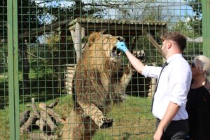 One of the highlights was the VIP tour of the Sanctuary, with three lucky winners’ hand-feeding the big cats, including the renowned BBC TV celebrity Maya the Jaguar. Guests also got to visit the Animal Resource Centre, where we had the opportunity to showcase BISON’s contributions in the education room. The room features a panoramic window overlooking the operating theatre, where endangered cats undergo life-saving surgeries. Informative, sensory displays adorn the walls, encouraging individuals and organisations to take positive action to support conservation efforts.