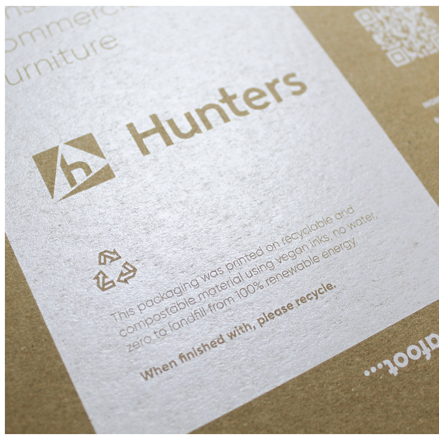 From the earliest sketches through to prototyping, production and fulfilment, we worked closely with Hunters to shape every detail. This included refining the concept, testing materials, ensuring the white ink performed perfectly on the recycled stock, and crafting a structure that balanced sustainability with a luxury feel.