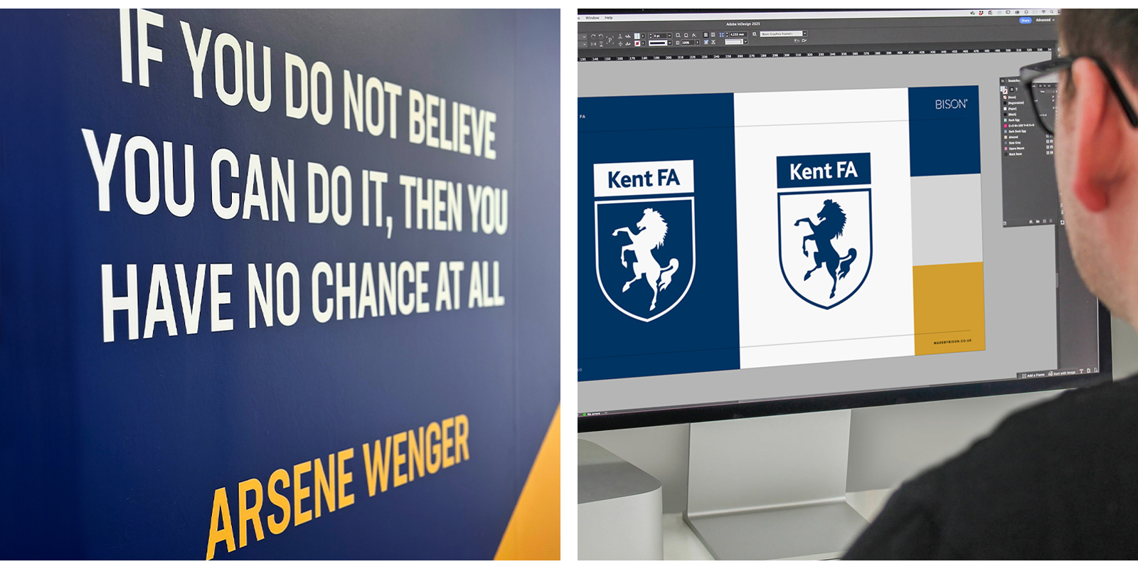 Kent FA’s headquarters – once fresh and functional – had become tired, unbranded, and uninspiring. Internally, the space didn’t reflect the passion and pride of Kent football. Budget was tight, but expectations were high – the space needed to feel “Kent FA,” speak to their whole community, and make an immediate impression.